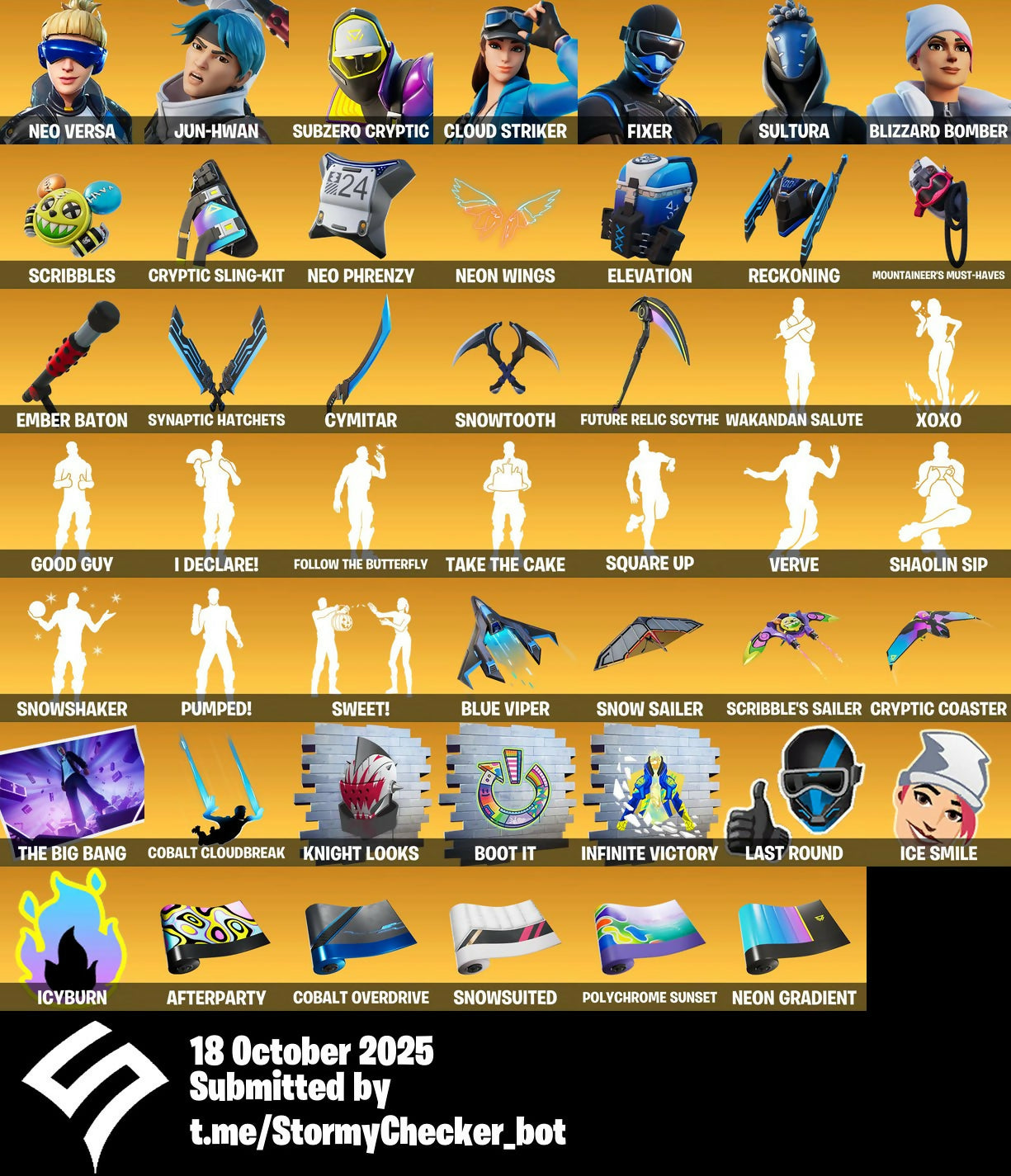 RARE Fortnite Account☑️97 Skins☑️Neo Versa☑️Cloud Striker☑️Sub Zero Cryptic☑️Blizzard Bomber☑️Fixer☑️Sultura☑️Jun-Hwan☑️Star Wand☑️Stun Knife☑️Pumped!☑️Get Griddy☑️Péle's Air Punch☑️