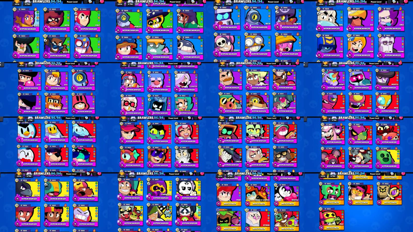 SUPER RARE TRIPLE MASTERS OLD POWER LEAGUE FULL MAXED || BLUE KING FRANK || 100K HIGHEST TROPHIES | 94/94 P11 BRAWLERS | 7 LEGACY R35 | KING LOU | 84 ACTIVATED HYPERCHARGES | 36 TITLES | 16+ BP PLUS BOUGHT | METEORIC FAME I | 500 + SKINS | DIRECTOR BUZZ |