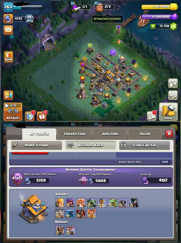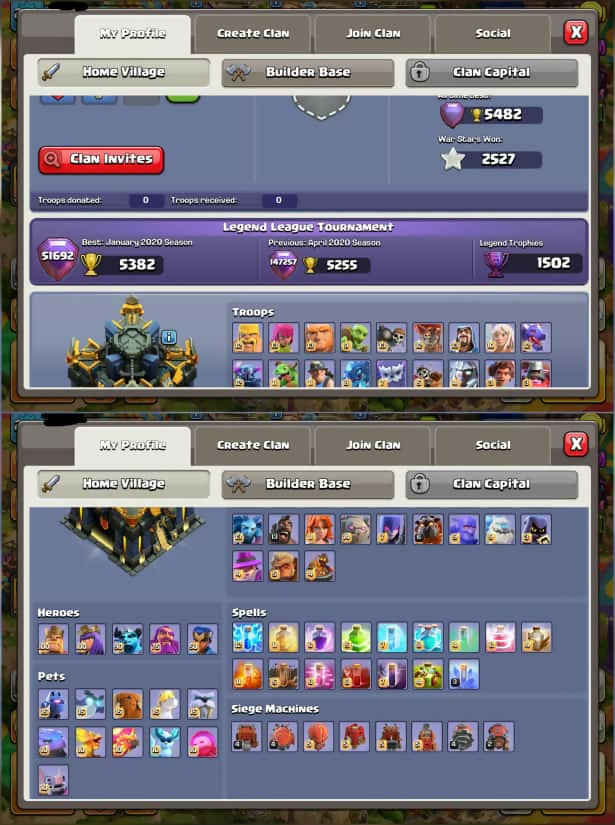 [ USA LOCAL & 13720 GEMS ] TH17 • XP 263 • 5 EPIC EQUIPMENTS (2 MAX) • MAX DEFENCE & ARMY • 2014 TREE • PAINTER SCENERY • FREE NAME CHANGE • HEROES:- BK100 AQ100 MP90 GW75 RC50