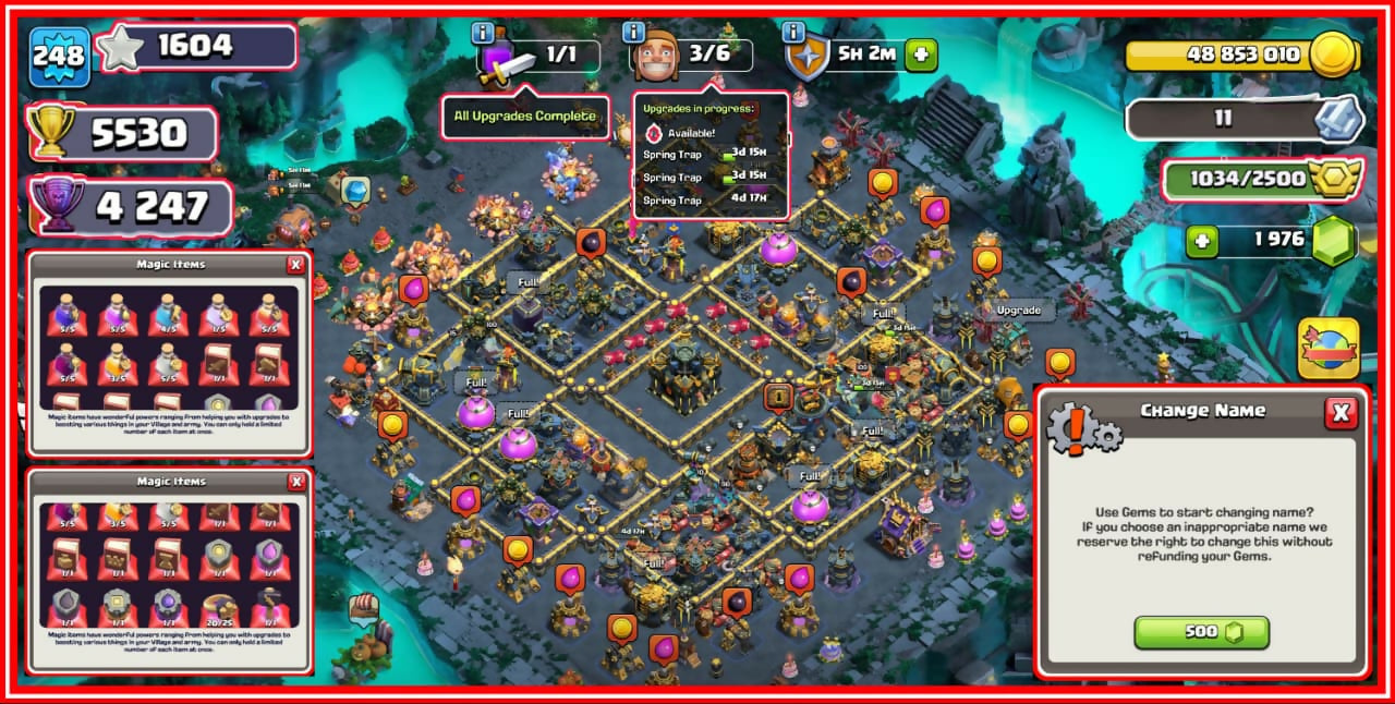? USA LOCAL ? TH17 Craziest & Rarest Ever ??ββ 45+ Skins & 5 Scenaries ? 29 Max Equipments β 9 Epic Max ? Fully Maxed Out [ 3 Trap Left] ? Full Stacked Base ? Android / iOS